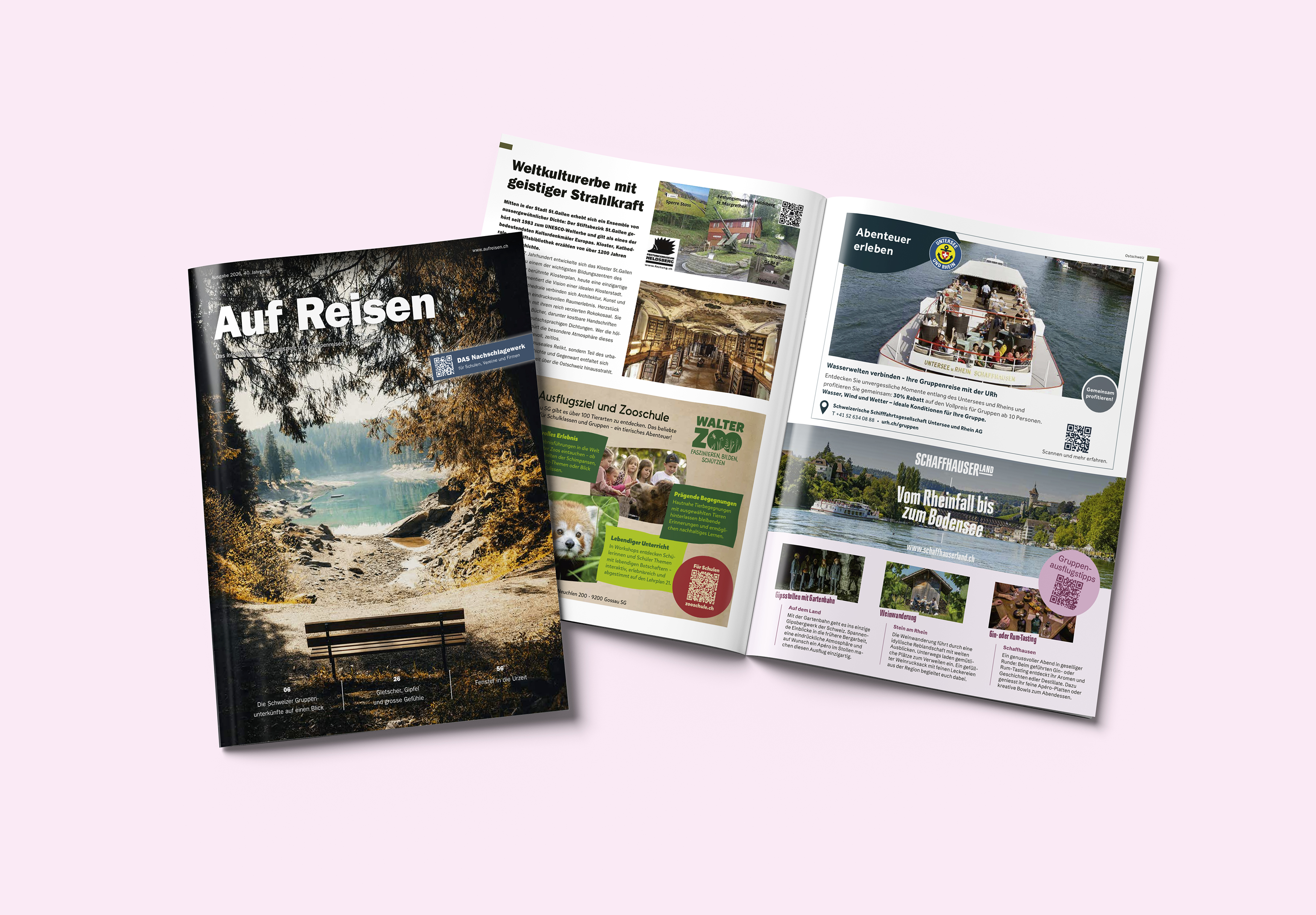 Auf Reisen ist ein Schweizer Kompendium für Schul-, Vereins- und Firmenreisen. Das jährlich erscheinende Magazin wird von Angeboten und einem Blog online ergänzt.